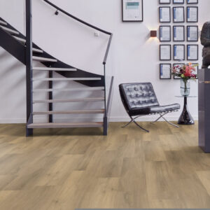 Ontdek de natuurlijke schoonheid van de P400, een pvc vloer die het uiterlijk van echt hout benadert. Met een sterke toplaag biedt deze vloer optimale bescherming en is hij bestand tegen intensief gebruik, krassen en water. De P400 heeft de look en feel van een echte houten vloer, maar de voordelen van pvc. Geef jouw project een warme en sfeervolle uistraling met deze matte pvc vloer. Maar waarom zou je deze kwaliteit beperken tot alleen de vloer? Laat de trap een naadloos onderdeel worden van je project.