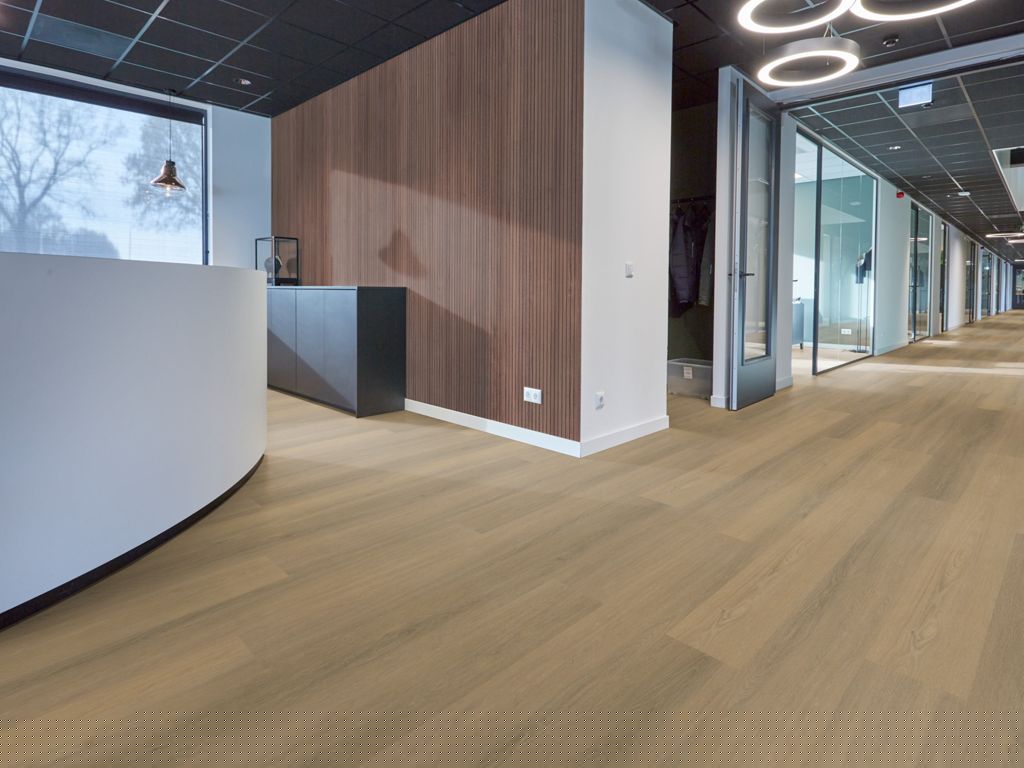 Deze pvc vloer is ideaal voor projectmatige toepassingen dankzij het rustige, natuurlijke dessin en de warme uitstraling. De realistische houtstructuur en extra lange planken zorgen voor een hoogwaardige en ruimtelijke look. Met een extra matte toplaag van 0,55 mm is de vloer sterk en slijtvast, geschikt voor intensief gebruik. De geïntegreerde 10 dB geluiddempende onderlaag draagt bij aan optimaal akoestisch comfort. Verkrijgbaar in diverse natuurlijke kleuren die passen binnen uiteenlopende projectinterieurs.