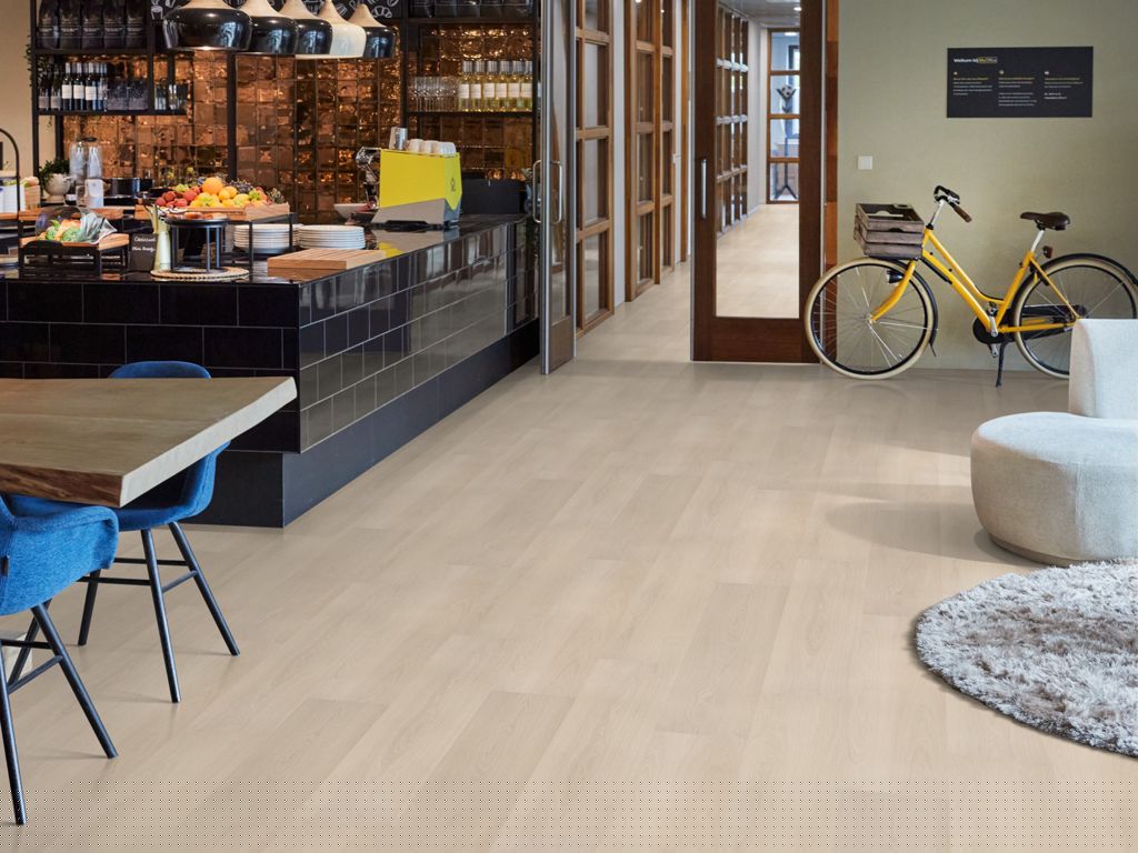 De P515 combineert een rustig dessin met een natuurgetrouwe structuur en is daardoor breed toepasbaar binnen diverse projecten. De extra lange planken zorgen voor een ruimtelijk effect en een elegante, hoogwaardige uitstraling. De vloer is een duurzame keuze en bestaat voor meer dan 50% uit gerecycled materiaal. De extra matte toplaag geeft de vloer een stijlvolle afwerking. Voor optimaal comfort is de vloer voorzien van een 10 dB geluiddempende onderlaag (SRC) en geschikt voor vloerverwarming en -koeling.