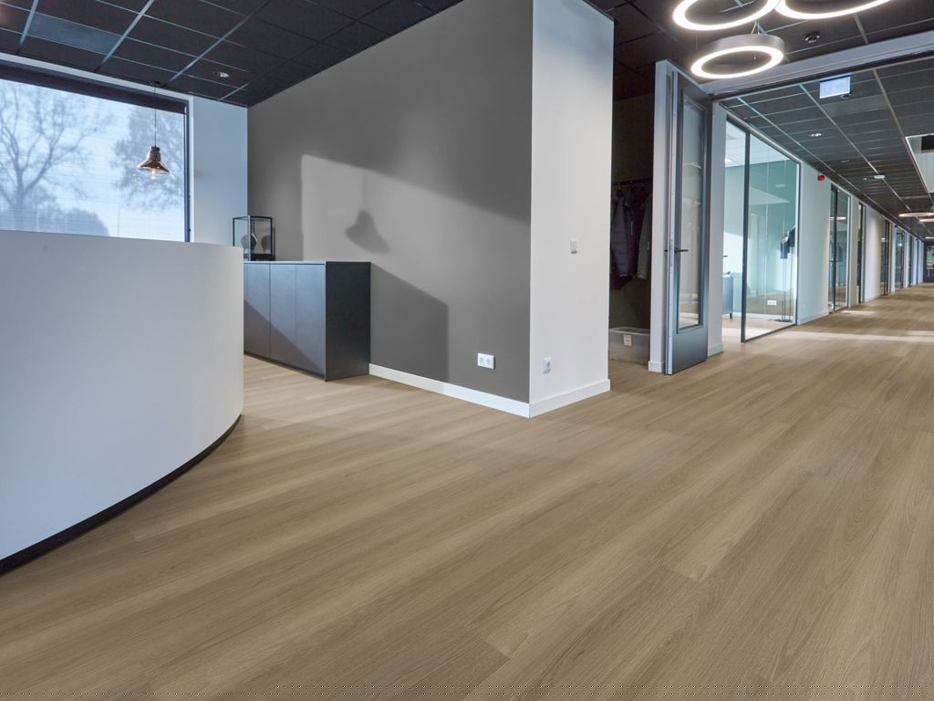 De P515 combineert een rustig dessin met een natuurgetrouwe structuur en is daardoor breed toepasbaar binnen diverse projecten. De extra lange planken zorgen voor een ruimtelijk effect en een elegante, hoogwaardige uitstraling. De vloer is een duurzame keuze en bestaat voor meer dan 50% uit gerecycled materiaal. De extra matte toplaag geeft de vloer een stijlvolle afwerking. Voor optimaal comfort is de vloer voorzien van een 10 dB geluiddempende onderlaag (SRC) en geschikt voor vloerverwarming en -koeling.