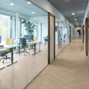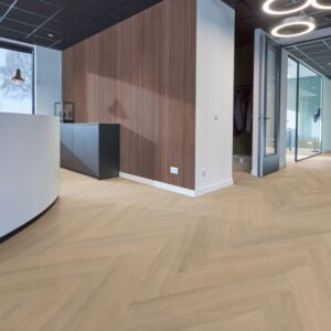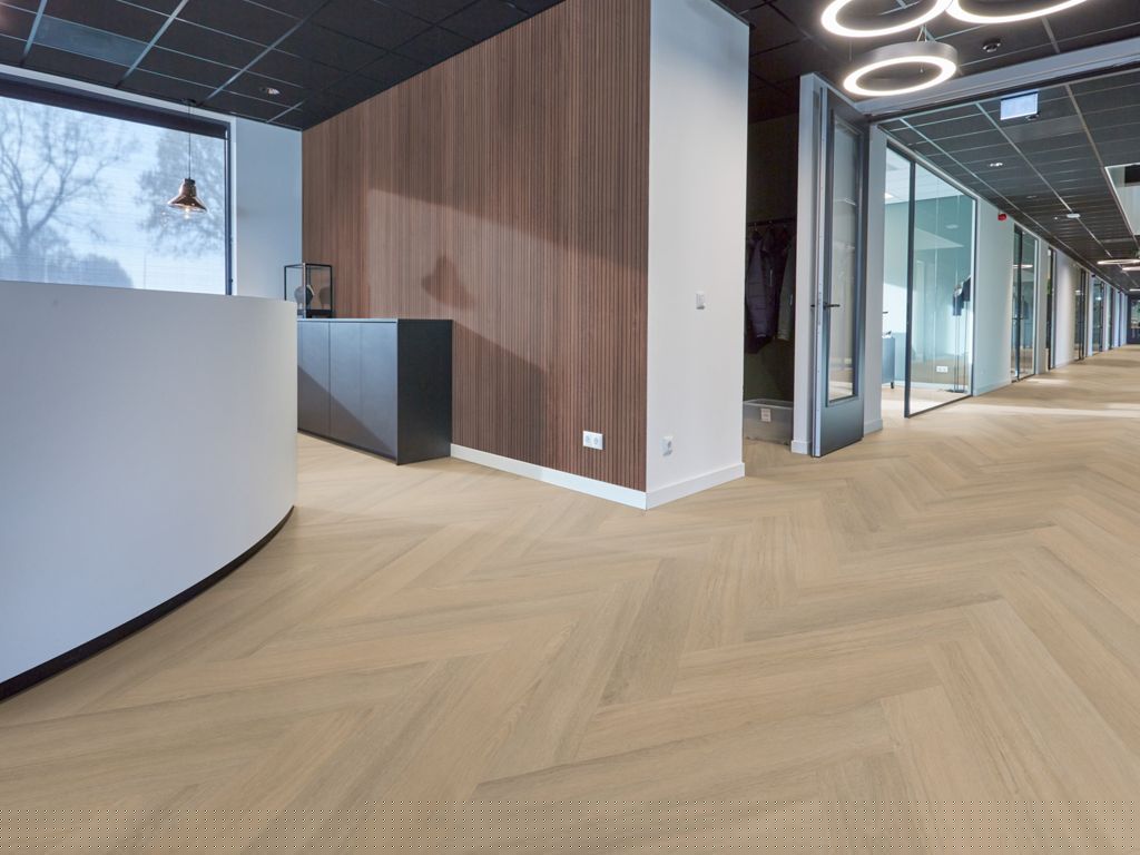 Deze pvc visgraatvloer biedt een rustige, warme uitstraling en een realistische houtlook dankzij de natuurgetrouwe structuur. De extra matte toplaag van 0,55 mm maakt de projectvloer bijzonder sterk en geschikt voor intensief projectgebruik. Met een geïntegreerde 10 dB geluiddempende onderlaag draagt hij bij aan prettig akoestisch comfort. Verkrijgbaar in natuurlijke kleuren die passen bij uiteenlopende projectinterieurs.