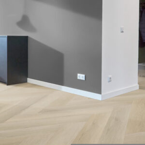 De P705 visgraat combineert een stijlvolle uitstraling met duurzaamheid. Deze vloer bestaat voor meer dan 50% uit gerecycled pvc, zonder in te leveren op kwaliteit en comfort. De brede planken en natuurgetrouwe structuur zorgen voor een strakke, luxe uitstraling. Dankzij de matte toplaag is deze vloer nauwelijks te onderscheiden van echt hout. Voor appartementen en andere geluidsgevoelige omgevingen is de clickvariant voorzien van een 10dB geluiddempende onderlaag (SRC).