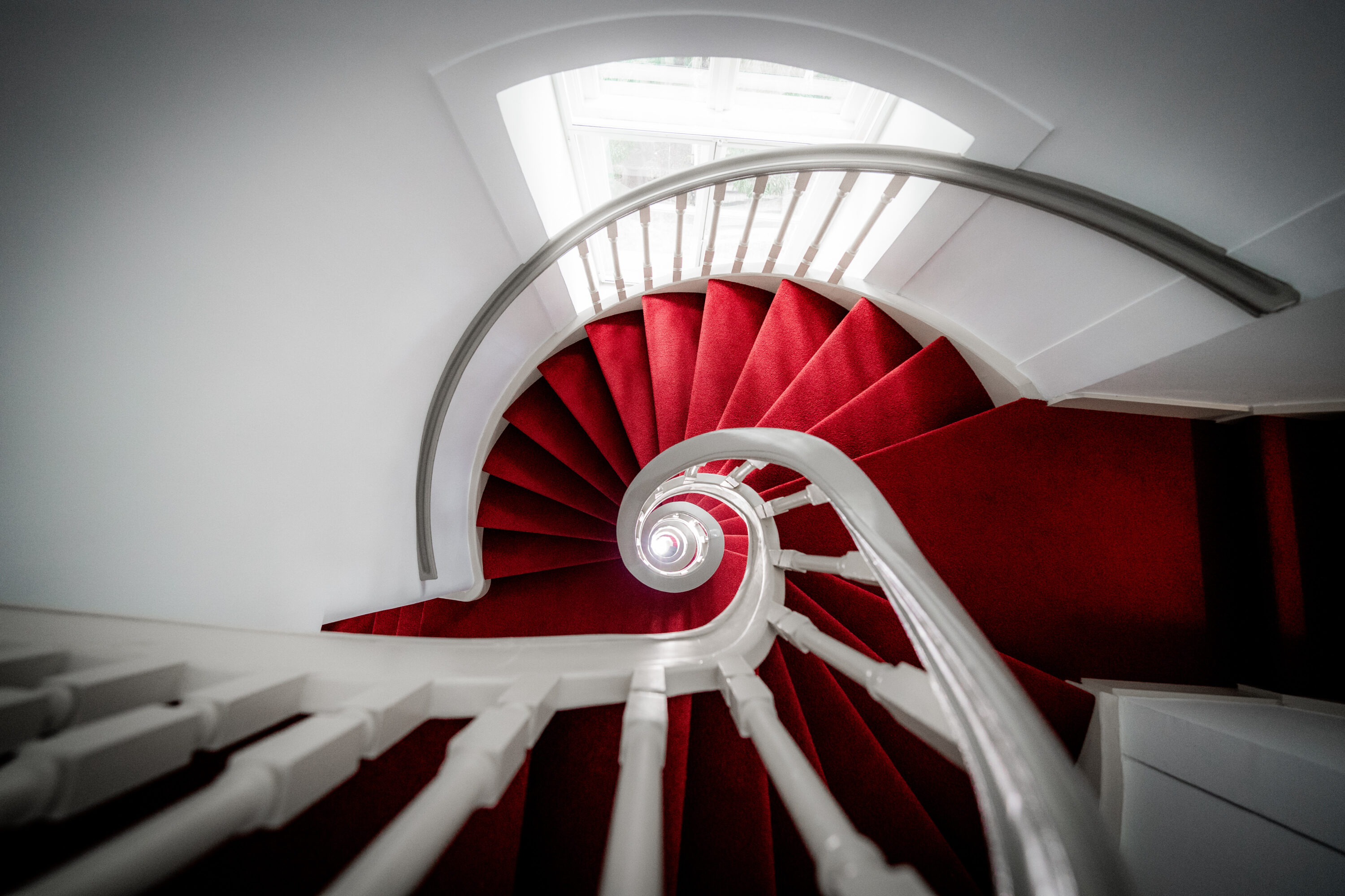 In het monumentale Paushuize in Utrecht heeft straq ook de trap een opvallende en stijlvolle metamorfose gegeven. Met de Traffic Karmijn 1048 hebben we een statement gemaakt dat perfect aansluit bij de vorstelijke uitstraling van het pand. De diepe rode tint ademt elegantie, warmte en een vleugje koninklijke allure, precies wat deze historische locatie verdient.
